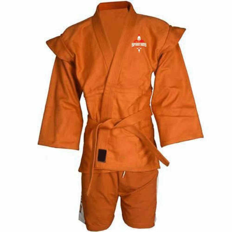 Our Sambo suits, also known as kurtkas, are specialized uniforms worn in Sambo, a Russian martial art and combat sport. The suit consists of a durable, jacket-like top with reinforced shoulders and sleeves for gripping, along with shorts and a belt. Made from thick cotton or canvas, the kurtka allows for the throws and grappling techniques central to Sambo while providing a secure fit. The shorts are paired with wrestling-style shoes, ensuring agility and traction. Sambo suits are designed to withstand intense training and competition, supporting both combat and sport variations of Sambo.